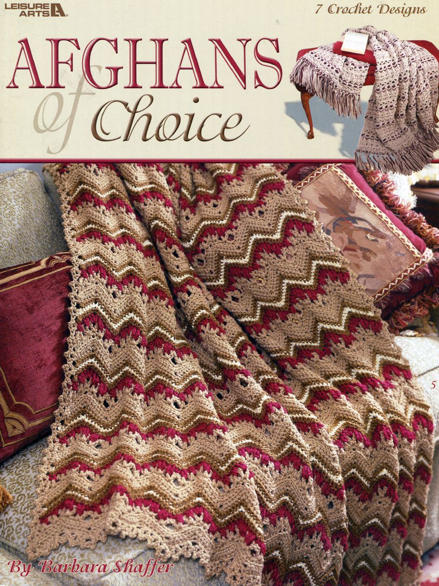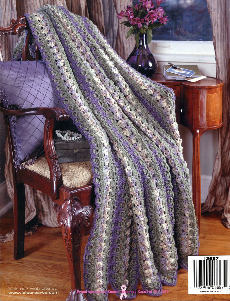 From Leisure Arts. These are some of the most beautiful crochet afghans ever! These work up quickly, using worsted weight yarns and large hook size J. Make these for your home, or get started now for some terrific Holiday gifts! Fun and easy to crochet, unique styles for every home!