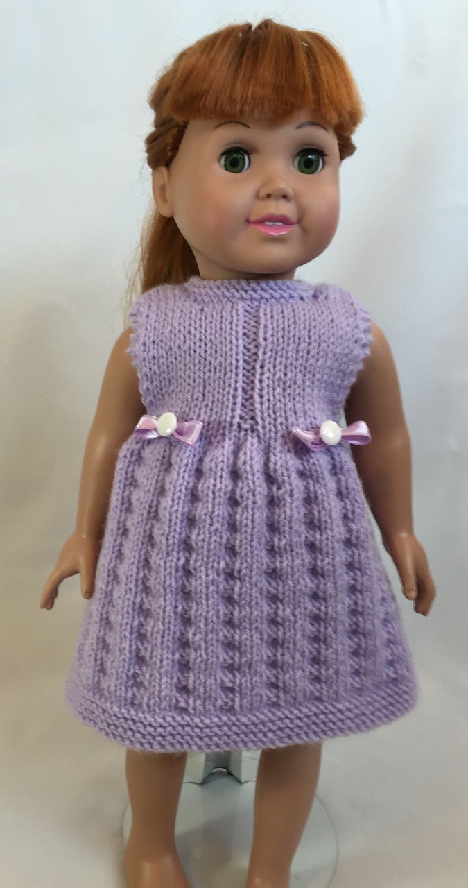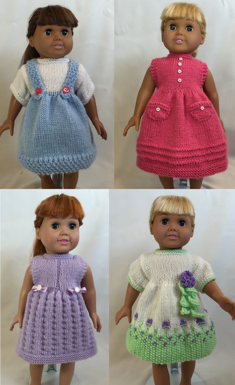 These knitting patterns are designed to fit many of the popular 18-inch vinyl dolls (those with vinyl head, arms and legs and a cloth stuffed body). These include: The American Girls Collection® by the Pleasant Company, Götz Dolls® (non-designer), Dress Me Doll© from The Martha Pullen Company, Tolly Girl®, Faithful Friends Collection®, Liberty Landing®, Girls on the Go®, Savannah of Storybook Heirlooms™, Laura Ashley®, Collector’s Lane®, Creative Doll Company®, Springfield Collection®, Sophia’s Heritage Collection®, Autumn Harvest™ and Our Generation™ and other 18-inch dolls with similar size and construction.