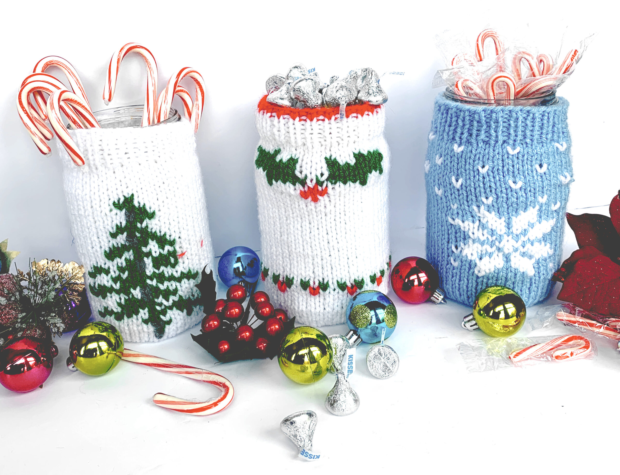 A great way to present a gift of home made sweet treats, small kitchen supplies, small bath items, home office supplies, and more! You can use up scrap yarns to knit the covers that fit over a one quart jar, then fill your jar with neat gift items! We like the small kitchen items, measuring spoons, potholder, dishcloth, and small mixing spoons. And the gift jar makes a nice gift of toiletries of small lotions and soaps, with a face cloth. For the Golfer, fill the gift jar with new golf balls! There are many ways to present a nice gift in these adorable gift jars!