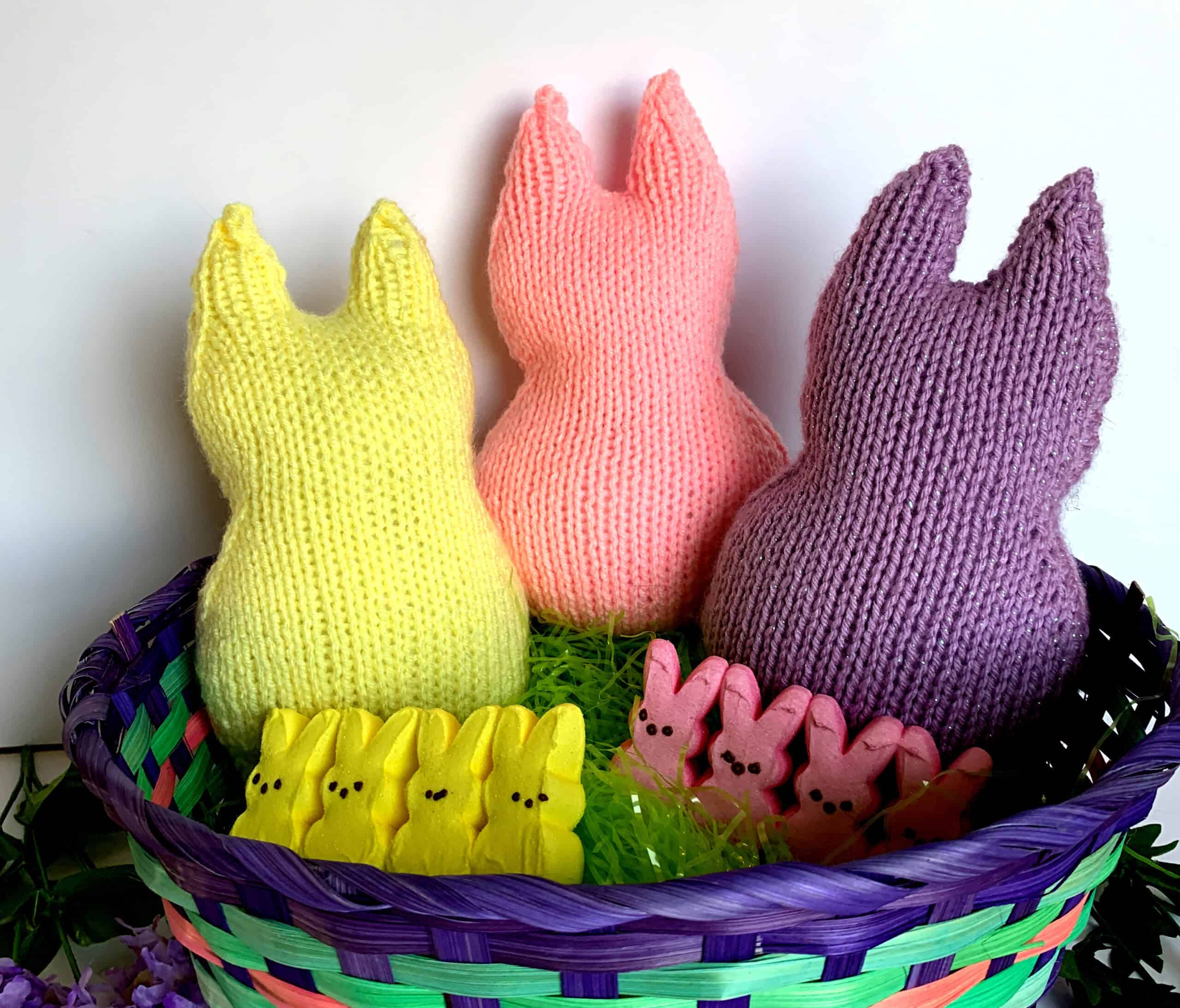 So soft and squishy, no marshmallow inside, just a soft pillow toy! This replicates those wonderful “ marshmallow bunnies’ treats we see in stores at Easter. What a great idea to add this soft bunny to the Easter basket along with edible marshmallow bunnies! Kids love this, so make lots in various colors. Not just for Easter, these make a cute gift all year round! Approximately 9 1/2 inches high. Use worsted weight yarns, knitting needles US # 8.