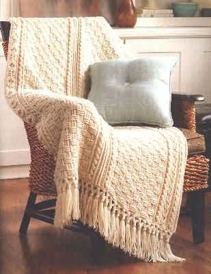 5 Designs, by Bonnie Barker. Try these exciting new aran stitch afghans for a great gift! Easy instructions will guide you through the patterns. Uses medium weight yarns, hooks sizes I, J and K. Work will go faster than you can imagine. Make one for your home, and one for a friend!