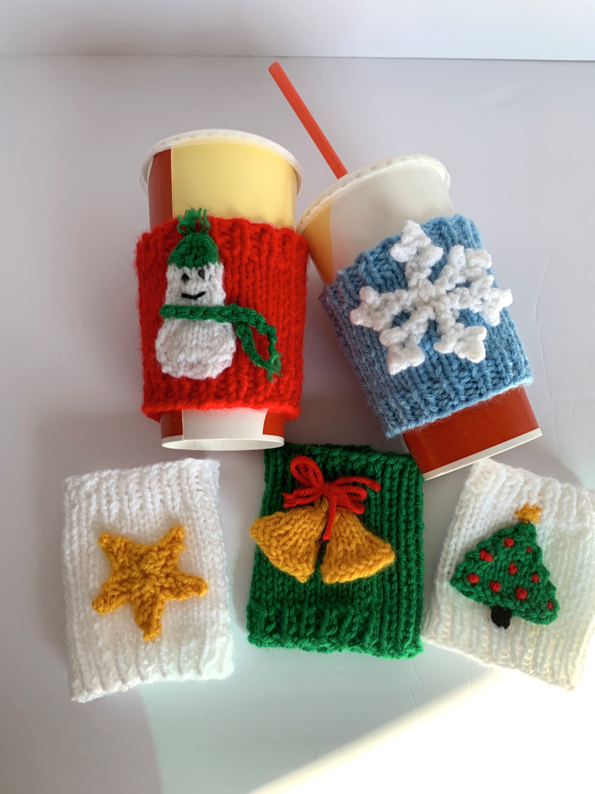This is a perfect low-cost gift! Pick you sleeve design, knit it up, then give as a gift with a gift card to their favorite coffee shop. ($10, $20, or more) Once this is knitted and the gift card is enclosed your gift shopping is done! Lots and lots of knitters have asked for a pattern like this, as it makes it totally easy to give Christmas Holiday gifts! This entire set of 5 different designs can be knitted and finished in less than 3 days! Use scrap yarns, that will save you even more money. Everyone needs to get on board with this great gift idea!