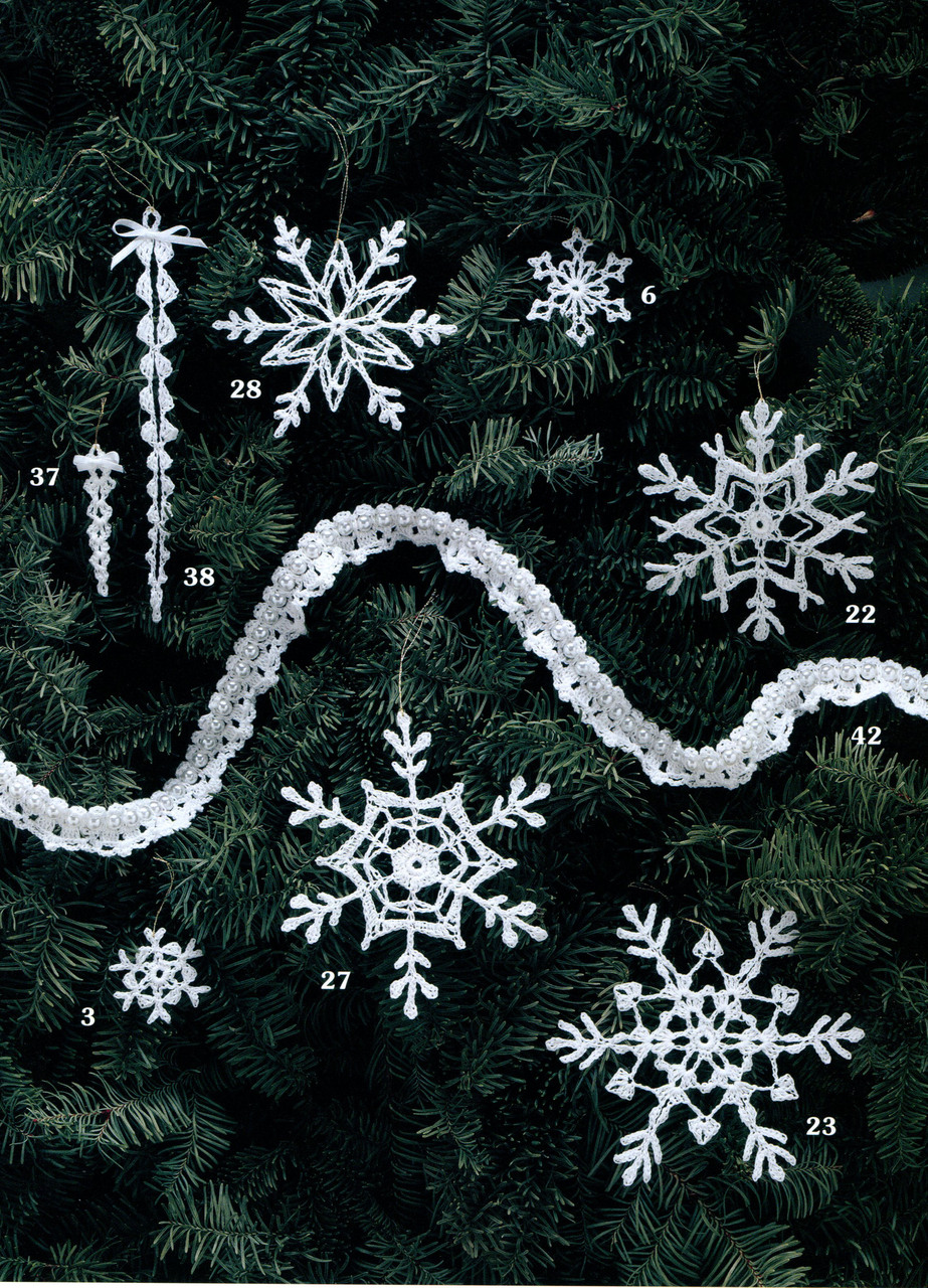 Perfect snowflake ornaments to crochet! Snowflake like designs are heavenly to crochet. Also includes easy crochet garlands and icicle ornaments. The patterns are easy to follow, so you can make plenty in time for gift giving, or to trim your own tree. Uses bedspread cotton, steel crochet hooks size 7. There are 45 different patterns including tree skirts too! A must have book for any crocheter! Keep this in your library for future use! Why not add pretty snowflakes ornament as a gift package trims to a wedding couple, or put one by each place setting when you have your next club meeting! Your club member friends will have a great new ornament to take home! LOW COST book makes this less than 18 cents per pattern! Buy now before our stock is sold out.